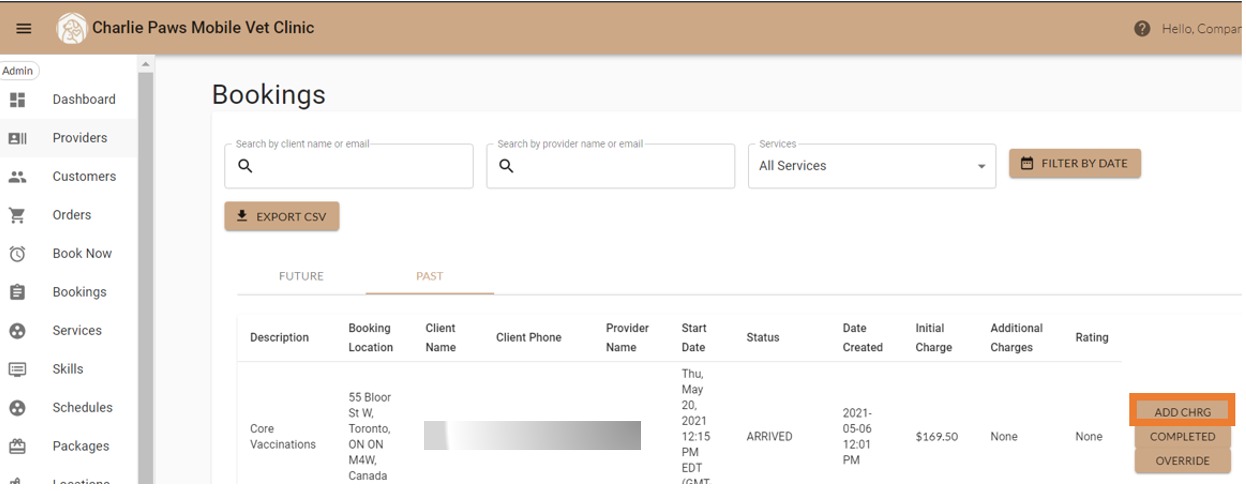 This allows the provider or admin to charge the client for the extra time added. As well, if a product is sold to the client, an additional charge can be added.