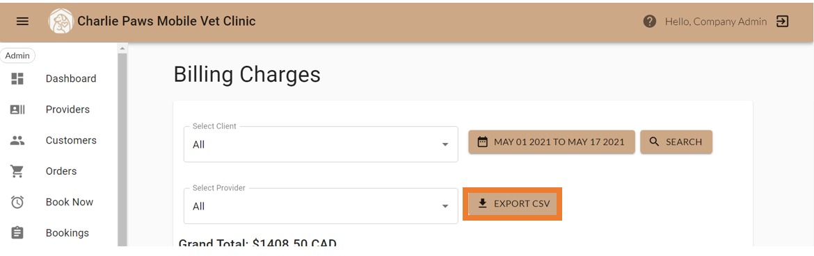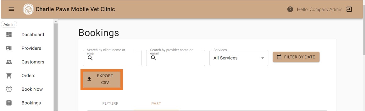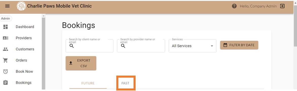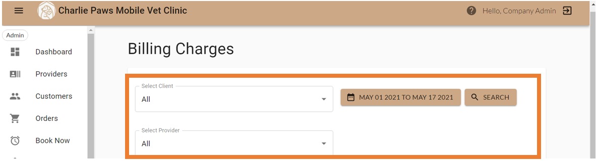 3. You can filter by client name, provider name, type of service, or date