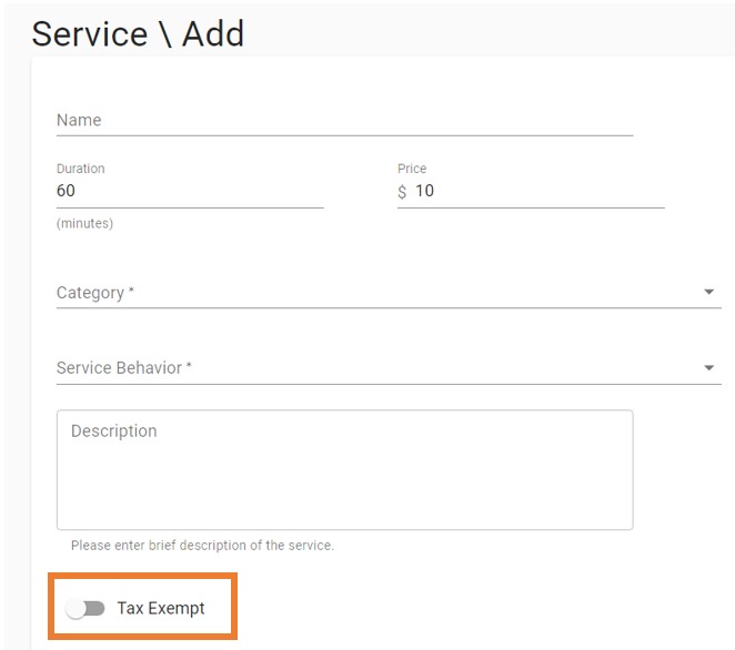 8. Tax Exempt: Use this switch if you normally charge tax on your services. If you have a specific service and do not want to charge tax, you would turn this switch on.