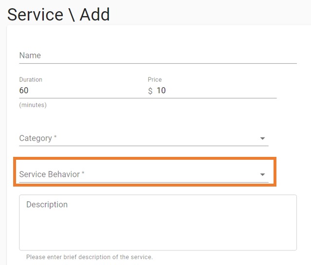 6. Fill out the service name, duration, price, category, and description.