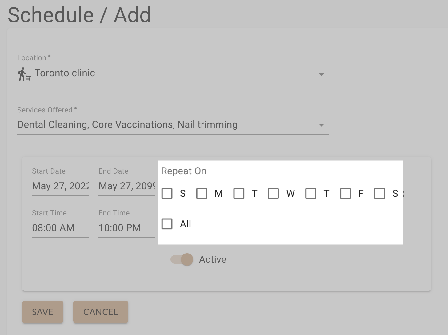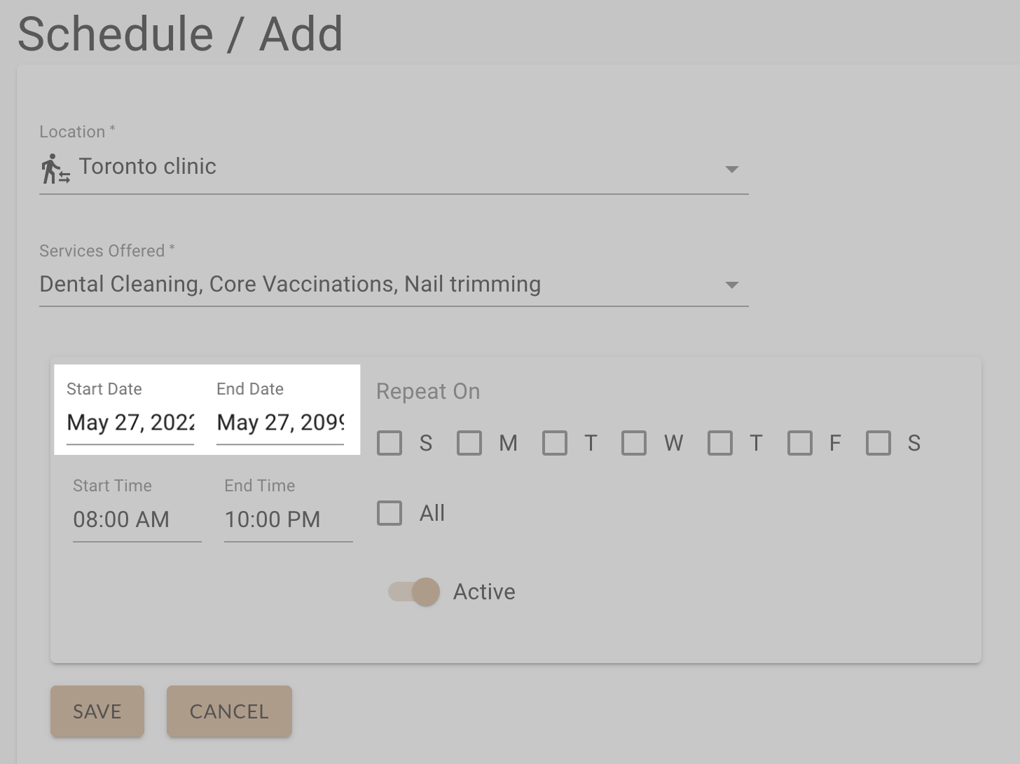 7. If your schedule is indefinite, make sure the No End Date toggle is OFF.
