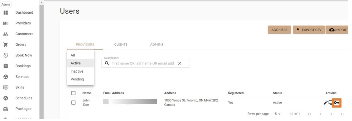 4. Click on the key where it will force a password reset. The provider or client will receive a link to reset their password. If they do not complete the rest and leave their device (mobile or laptop) the link will expire, and the rest will not complete.