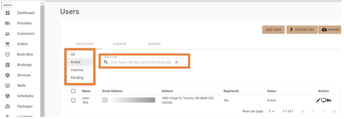 3. Search for the user experiencing issues and check their status