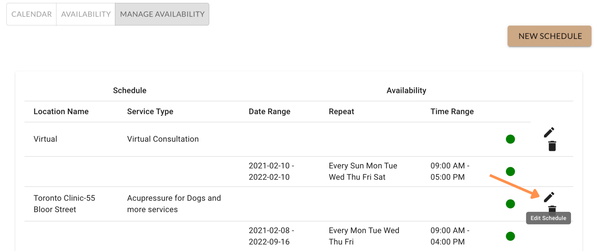 3. Click the Edit Schedule Icon.